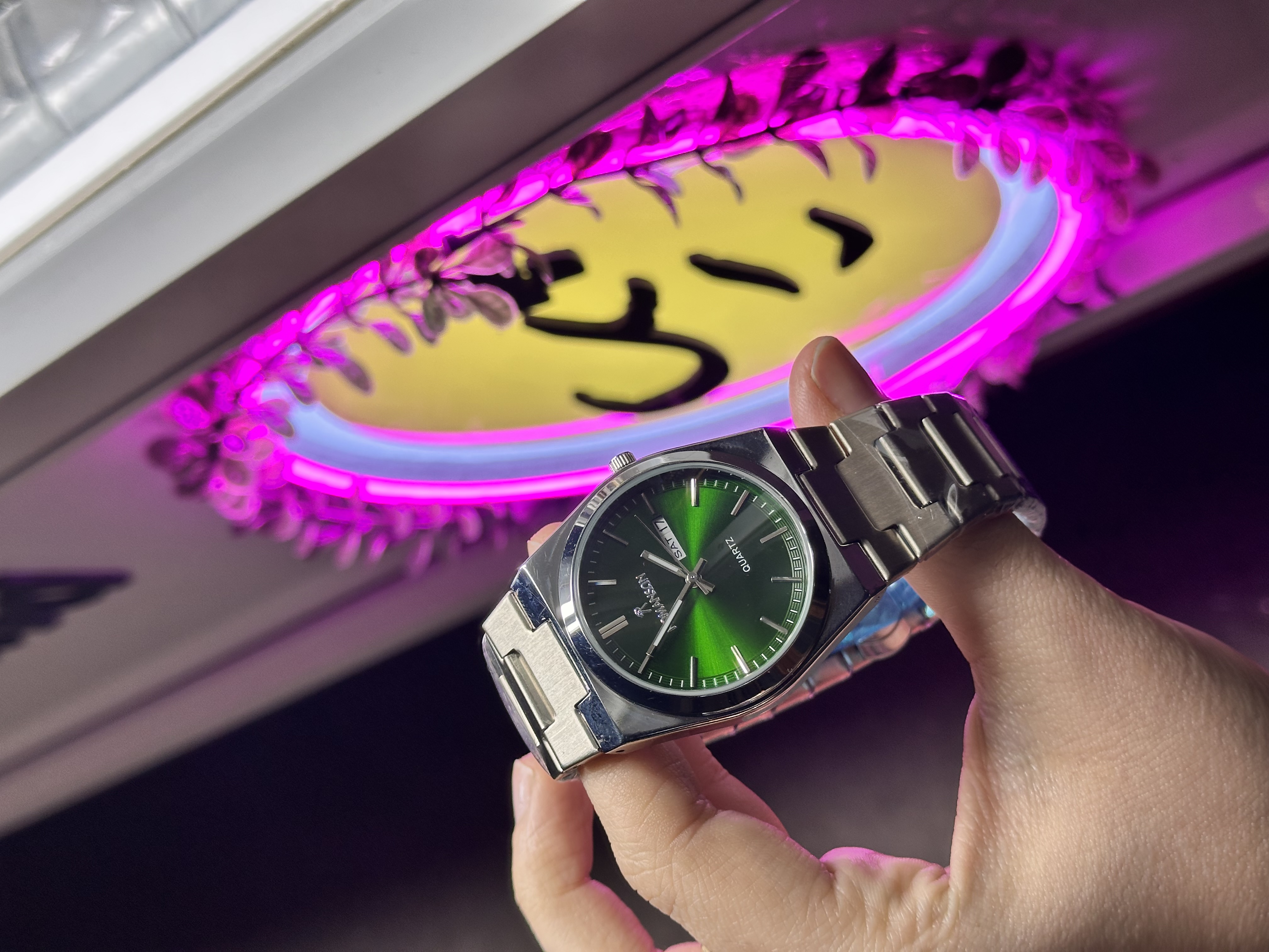 ساعت مردونه موتور زاپن ساعت باکیفیت ساعت مردونه شیک ساعت خوشگل ساعت صفحه سبز ساعت استیل ساعت مردونه